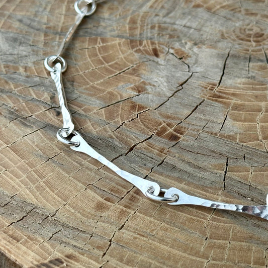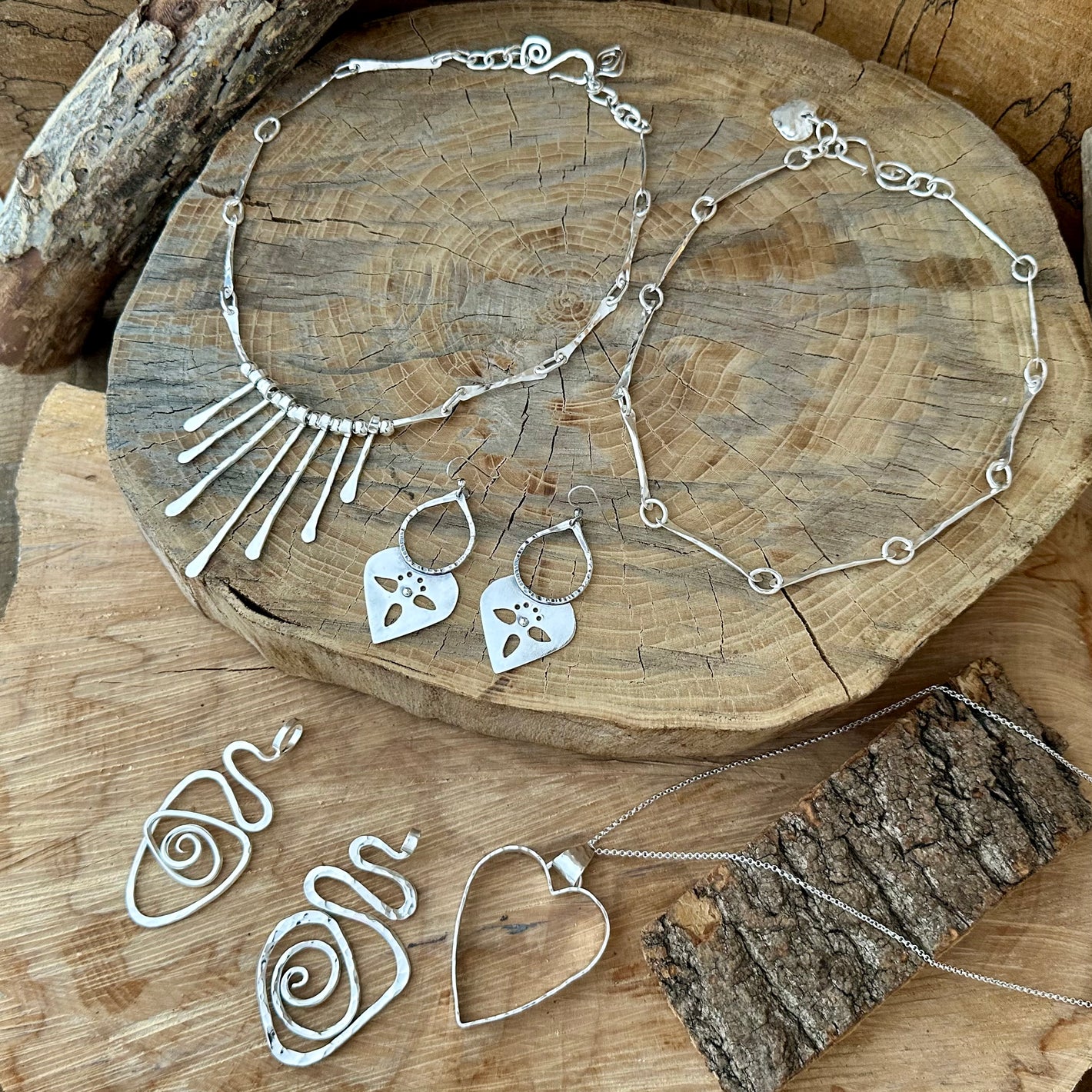 I stumbled into jewelry-making by accident—thanks to a chance visit to a bead store—and I was instantly hooked. What started with stringing beads quickly turned into a love for silver and forging my own designs. Over time, I found my style: organic, colorful, and always one of a kind. My hope is that when you wear one of my pieces, it feels like it was made just for you, because it was. From my hands to yours, enjoy!