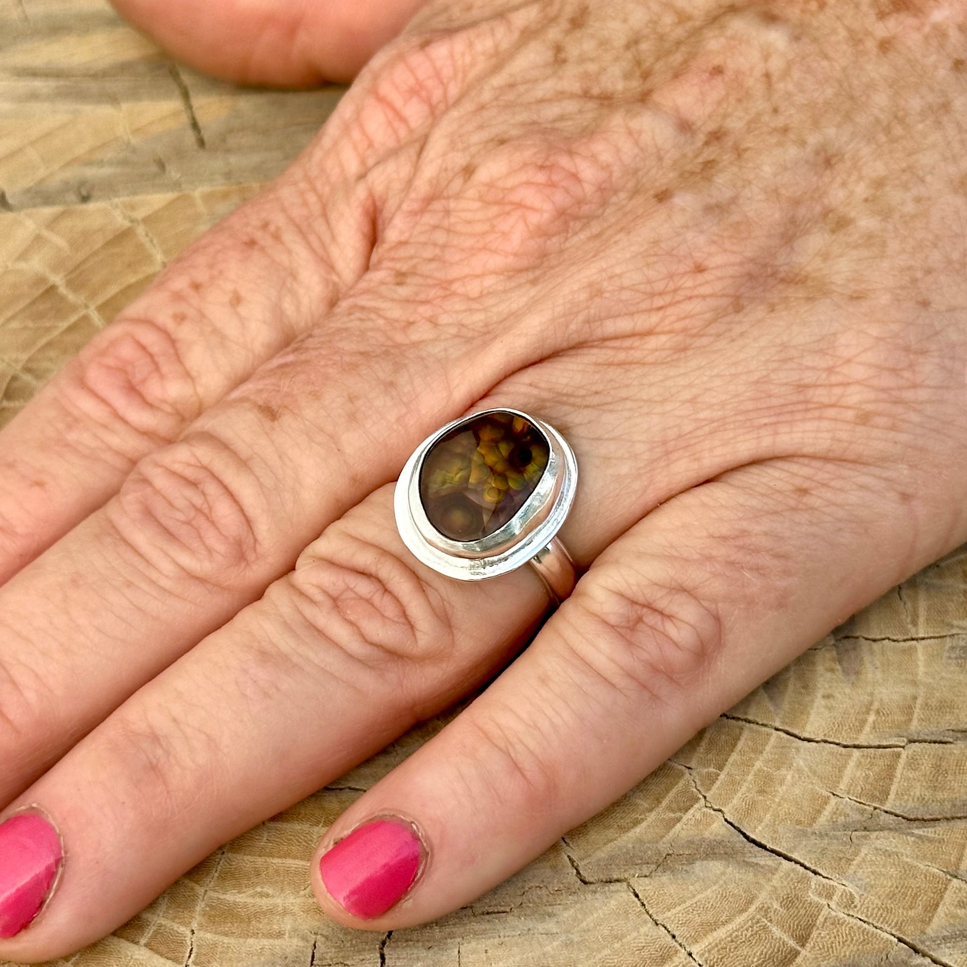 Golden Fire Agate Ring — One of a Kind in Sterling Silver (Size 7)