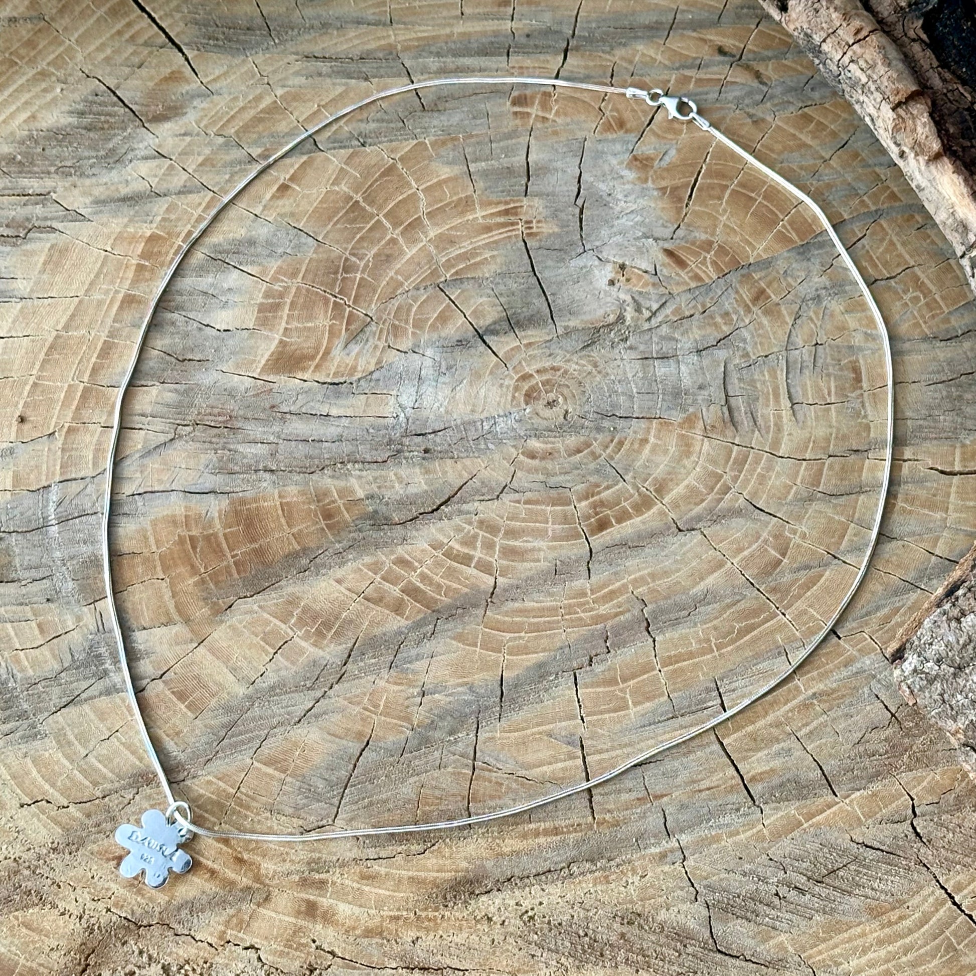 The Spring Blossoms Necklace features a hand-cut sterling silver blossom, delicately shaped and a hammered texture. About the size of a dime, the blossom feels light and graceful—perfect for everyday wear or layering with your favourite pieces.